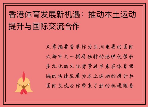推动体育发展,弘扬竞技精神